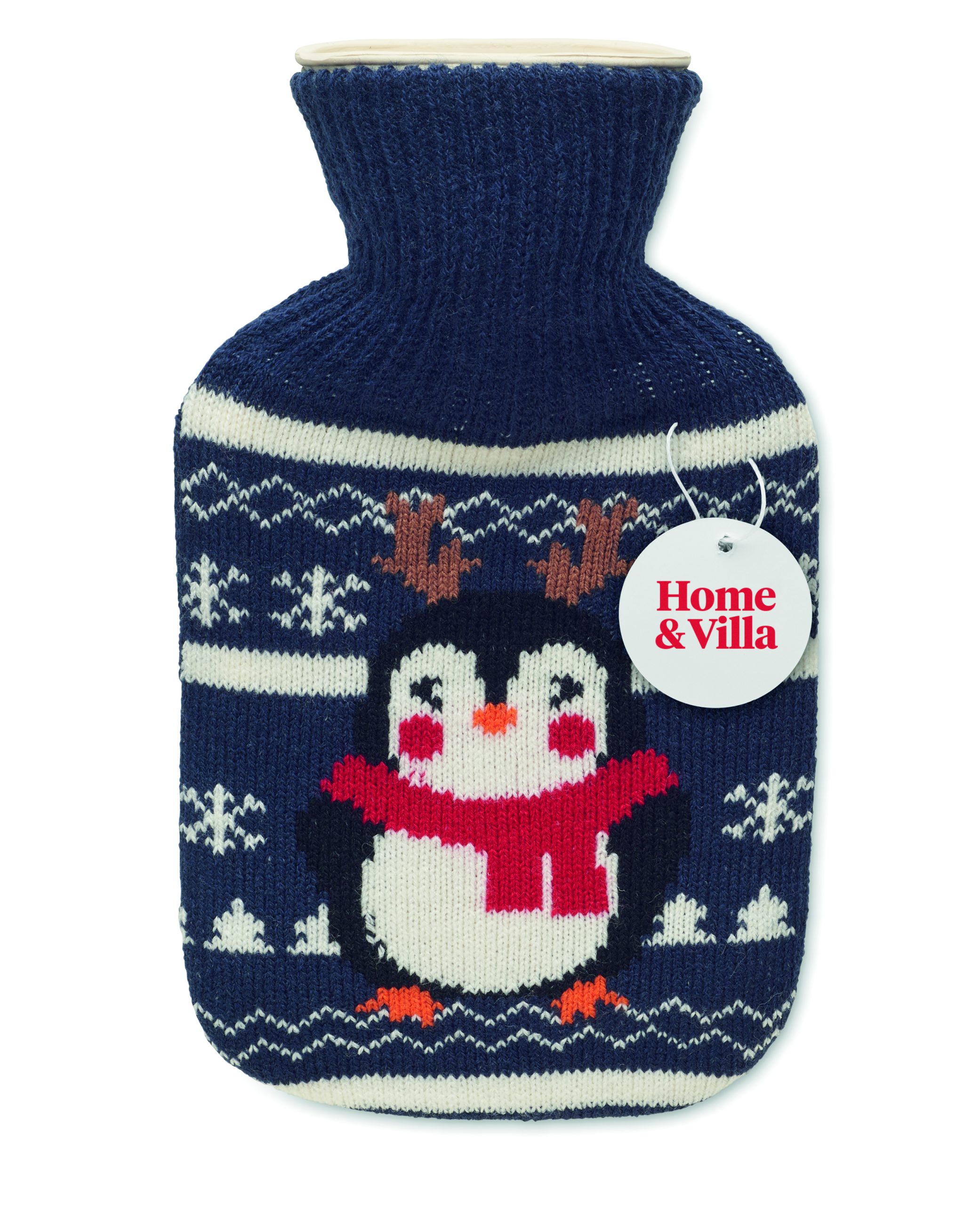 Hot water bottle with jersey in Christmas pattern. Used to provide warmth, typically whilst in bed, but also for the application of heat to a specific part of the body. 250 ml capacity.