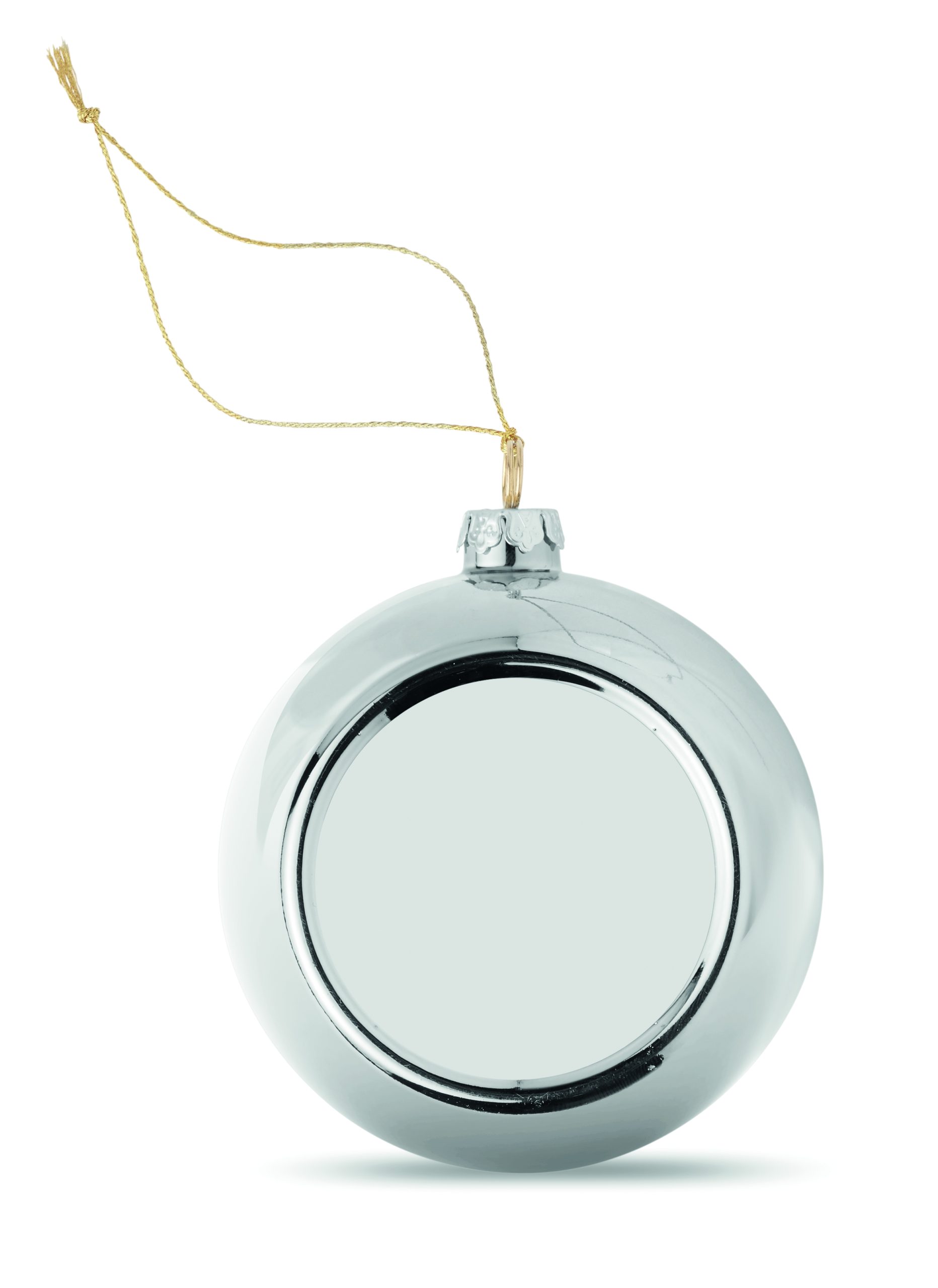 Christmas bauble in shiny PP including plate for sublimation print. Diameter 6 cm.