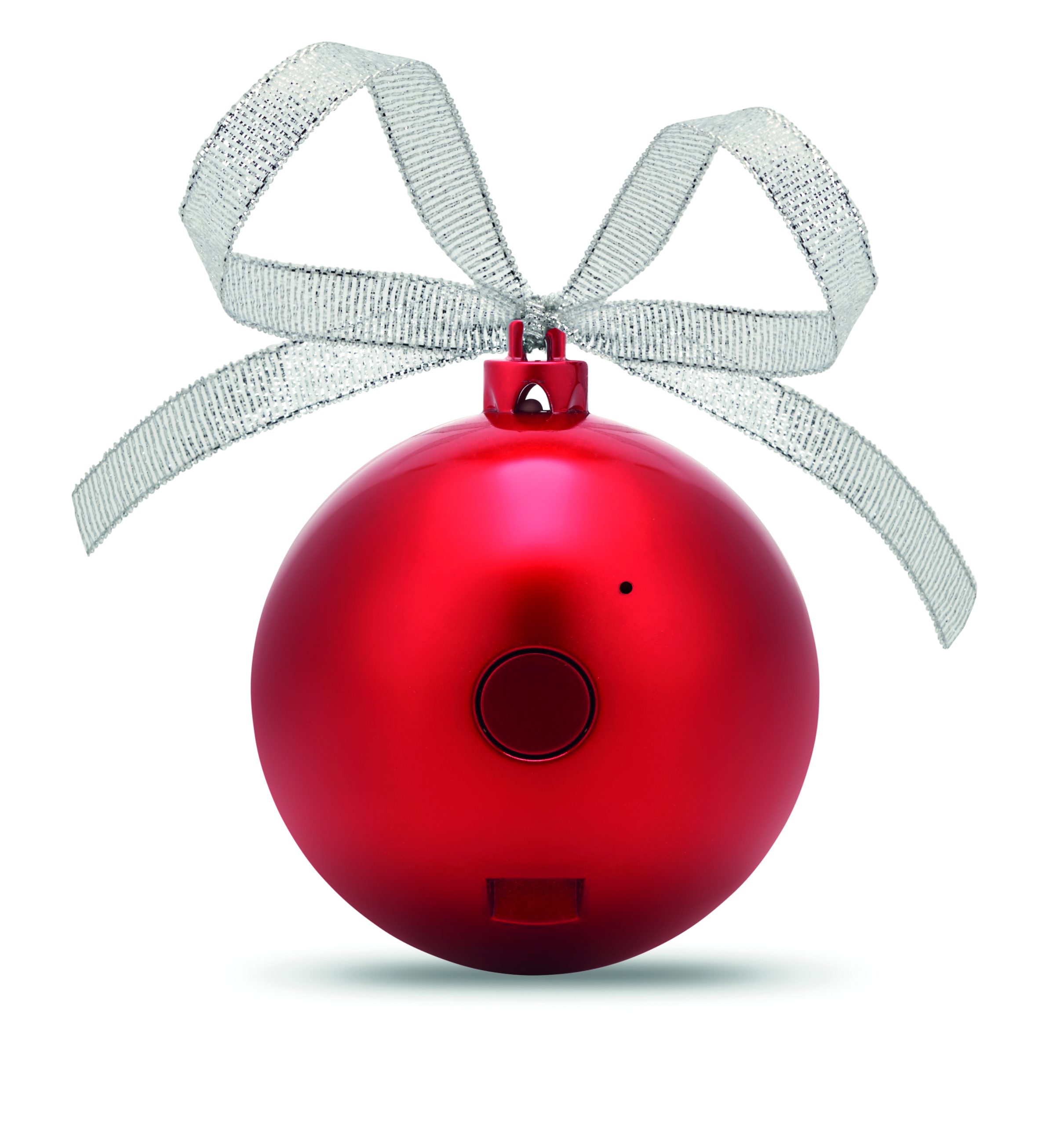 5.0 wireless christmas bauble speaker in ABS. Easy connection with any wireless enabled device . Rechargeable Li-ion 300mAh battery. Includes USB charging cable. Output data: 3W and 4 Ohm. Operating range: 10 m.